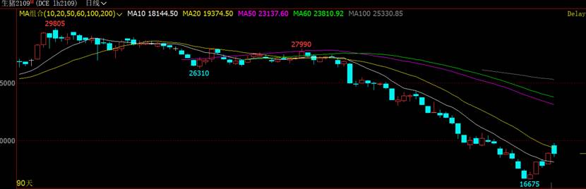 生猪期货在上周五大涨6%后持续反弹,最高触及19800元/吨,日内涨幅接近2%。上周猪价探底回升,在触及低点16675元/吨后持续反弹,一度逼近19000关口。