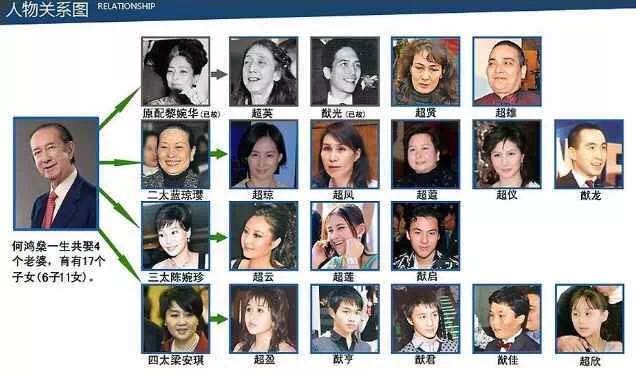 何鸿燊的家族十分庞大,一共有4房太太和17个子女,曾多次因为家庭矛盾和财产纠纷登上娱乐版和商业版头条。